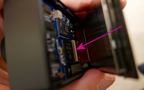 The disassembled camera can be seen in the pictures above. Perhaps everything important is visible on them. The arrows lead to the unfortunate display connector and to the contacts we used to sync the shutter. Again, we repeat that everything is without warranty, and any modifications to your cameras are at your own risk.